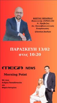 Στην εκπομπή «Morning Point» του MEGA News παρενέβη ο Βουλευτής Πρέβεζας, Τομεάρχης...