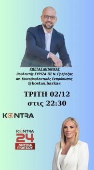 Στην εκπομπή «Kontra24» του KONTRA Channel, ο Βουλευτής Πρέβεζας, Τομεάρχης Προστασίας του...
