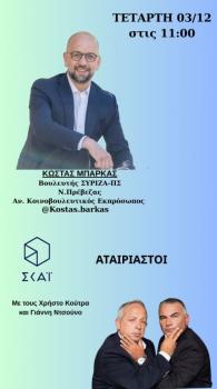 Κώστας Μπάρκας: «Η κοινωνία ζητά νέο προοδευτικό πόλο - 70% δεν εκπροσωπείται από τα υπάρχοντα κόμματα»